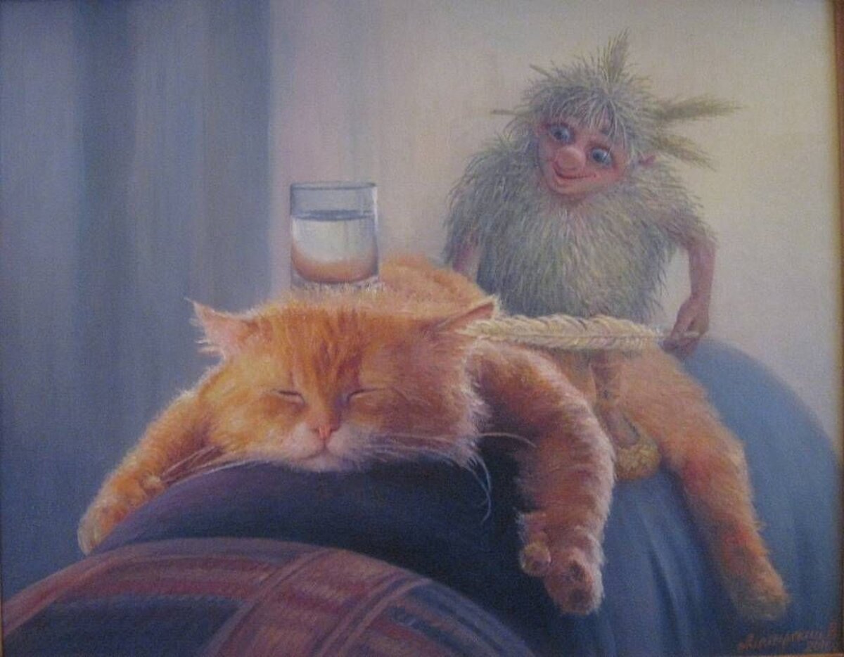 Зинаида Захаровна вот сидит, балансирует на табуретке. Что бы я про нее не говорил, а все таки она тетка добрая. Никогда она никому плохого не пожелала и не сделала. Ну, разве что на Халка пару раз наступила… Так он только рад был. Не каждому при жизни дано своими глазами увидеть себя со стороны. Ой, смешной был случай тогда… Когда Халку глаза на место вставляли, местами их перепутали. Он сидит, на нас смотрит, смеется, аж икает, а мы так вообще по полу катаемся, потом Кот еще шерстью подавился… Ох, веселый был день. Так я о чем? А! Зинаида Захаровна хорошая женщина. Бухтим иногда на нее, но все равно любим. Куда ж мы без нее?