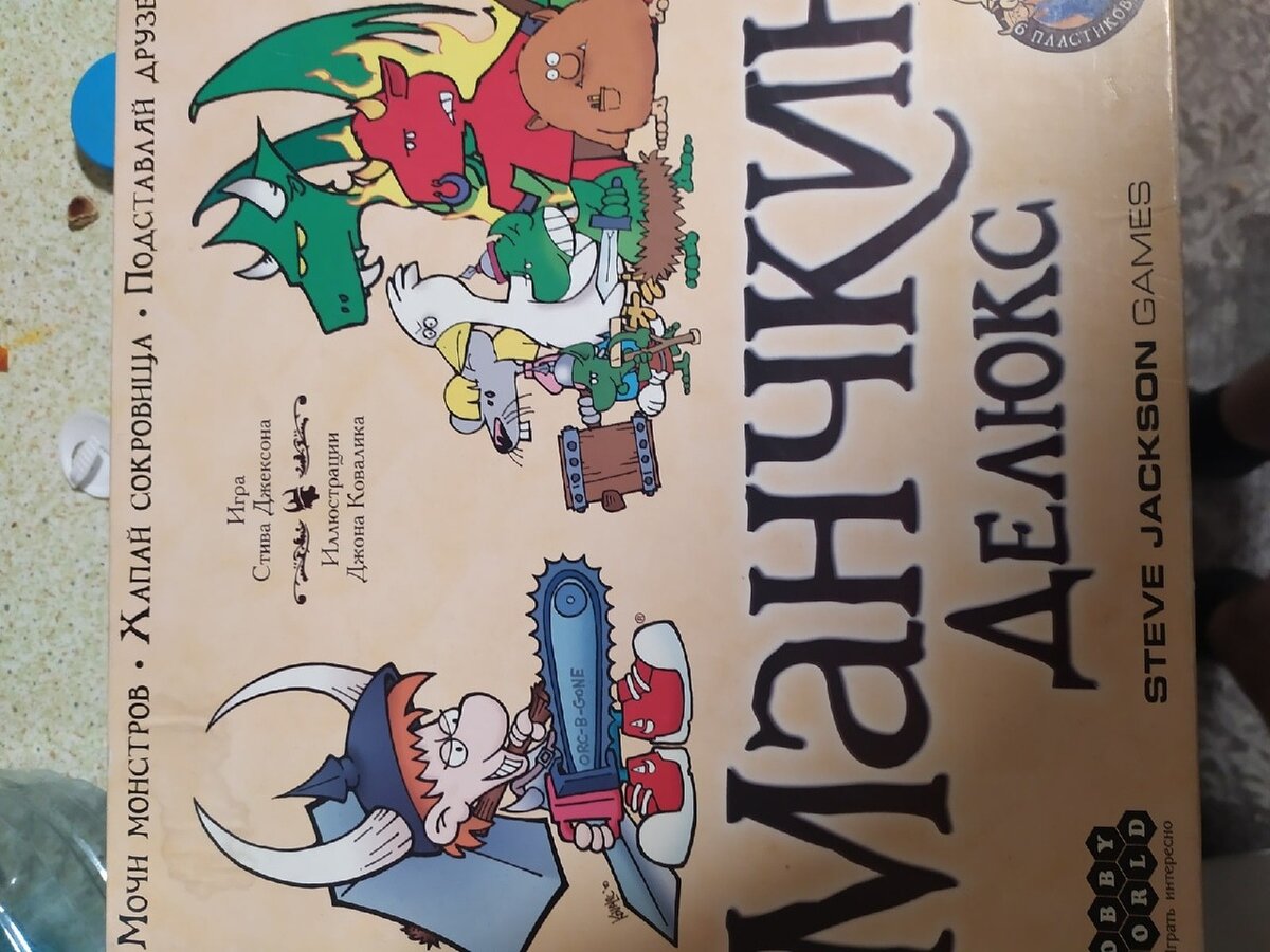 Это очень увлекательная и интересная настольная игра, дополнений к этой игре очень много, но к сожалению стоит денюшек. Эта настольная игра очень увлекает когда играет в нее больше 3 человек, тут есть множество различных карт, таких как выбор расы и класса, можешь ли ты носит большое оружие в одной руке или в двух, все зависит от класса. Играть можно вообще везде, мы играли даже в подъезде, зимой) в наличии идет само собой карточки и 6 фигурок. Но если брать более лучшую версию( делюкс) ну и конечно стоить будет побольше! там идет в комплекте, те же самые карточки и плюс еще карта. Есть конечно и дополнения и их довольно много, но у меня только одно. Карточки делятся на 3 типа: 1) Это сокровища, где выпадают плюшки и улучшения. 2) И двери, где попадаются монстры разных уровней и так же улучшение для них и для нас. 3) пустые карточки, где вы можете придумать так и улучшения для себя, так и улучшения для монстров или любое усиление, или на что способна фантазия. к сожалению пу