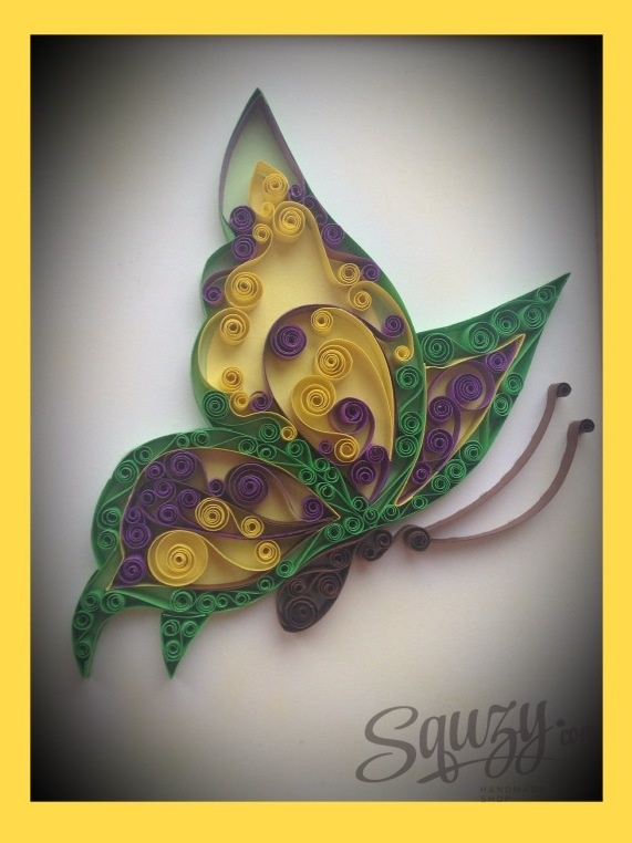 В центре композиции бабочка в пастельных летних тонах, для создания которой я использовала уже знакомую многим технику квиллинг. Способов создания бабочек в этой технике существует достаточно много. Одни рукодельницы предпочитают использовать булавки, оплетая вокруг них полоски цветной бумаги и создавая таким образом контуры. Кто-то предпочитает все делать «на глаз», без использования каких либо трафаретов или шаблонов.