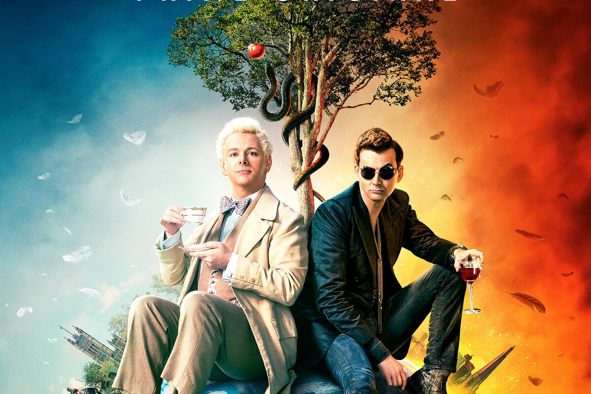 Вот я и закончил просмотр сериала "Благие Знамения", основанного на романе Терри Пратчетта и Нила Геймана. Воплощенная на экранах благодаря талантливому режиссёру Дугласу Маккиннону (Шерлок, Доктор Кто, etc.), эта история очень легко захватывает внимание зрителя. Тема противостояния Небес и Ада, Добра и Зла, существования загробной жизни никогда не потеряет свою актуальность, тем более если и дальше ее будут представлять такие качественные проекты. В центре повествования находятся харизматичный демон Кроули (Дэвид Тэннант) и обаятельный ангел Азирафель (Майкл Шин). Будучи знакомыми уже более 6000 лет от самого сотворения мира, даже такие яркие противоположности не смогли избежать возникновения между собой дружеских чувств. Беда в том, что их бесконечной и спокойной жизни на Земле, среди хороших книг, отличной музыки и доброго вина, грозит предначертанный Апокалипсис. Сын Сатаны, Антихрист, был принесен в этот мир, чтобы через 11 лет развязать войну, к которой и Светлая, и Темная сторон