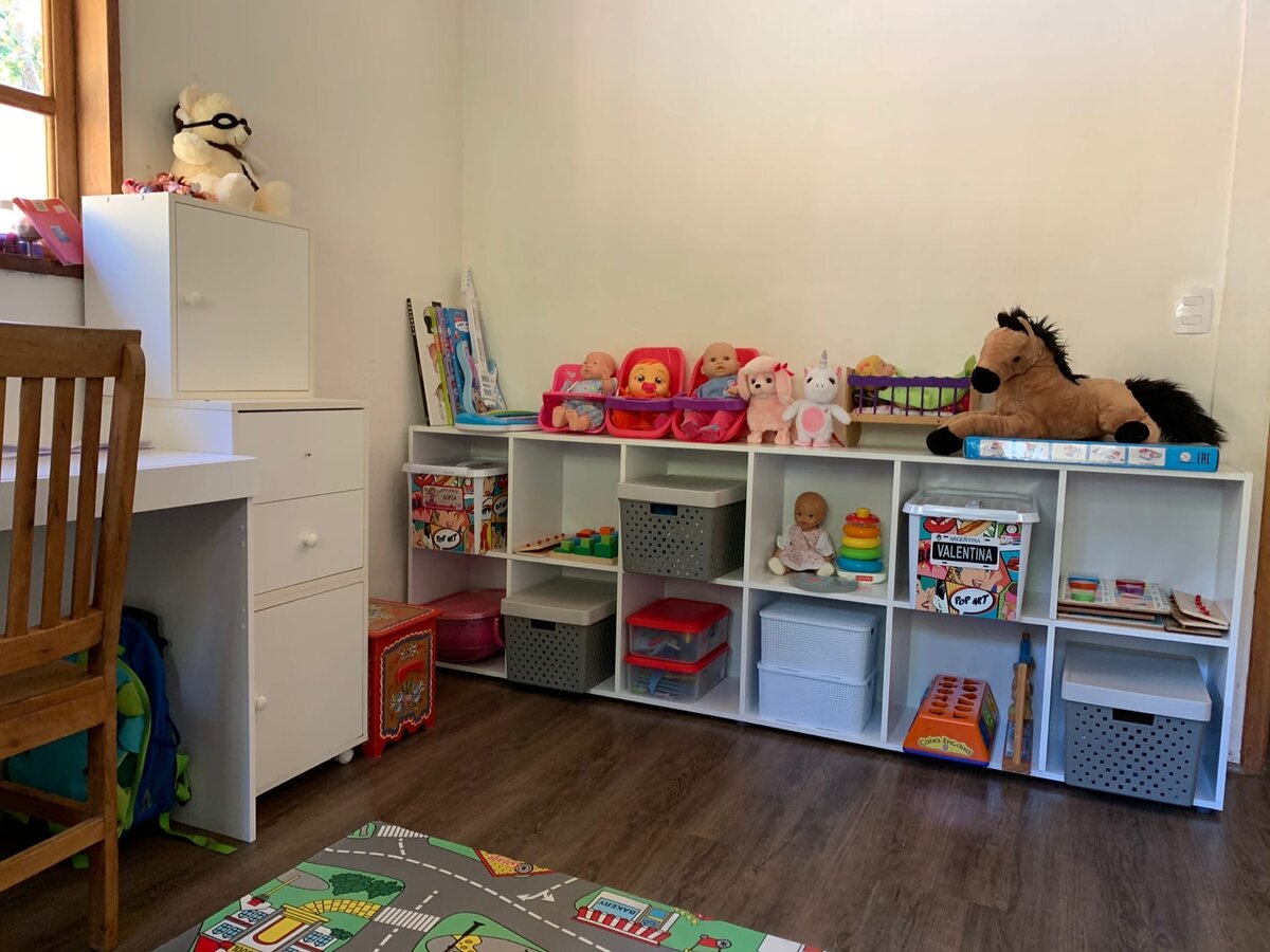 Навели порядок в детской. Поставили тот же самый стеллаж, что для книг у нас, только горизонтально. Комната стала гораздо функциональнее, хотя места он занимает всего ничего.