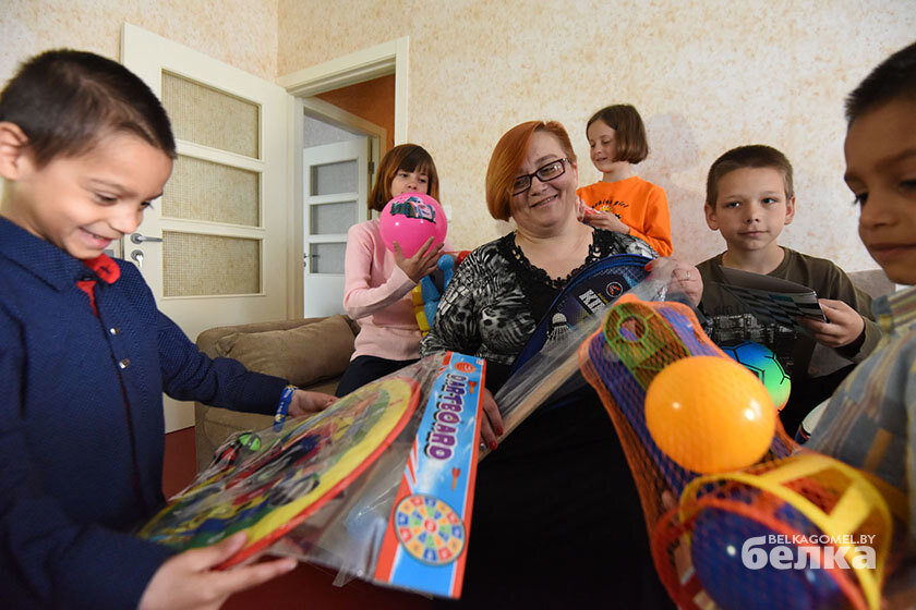 Открытие дома семейного типа состоялось в День защиты детей. Семье подарили школьные принадлежности, спортивный инвентарь и развивающие игры. Младшие дети сразу принялись набивать ногой подаренные мячи, а старшие разглядывать наборы для творчества.