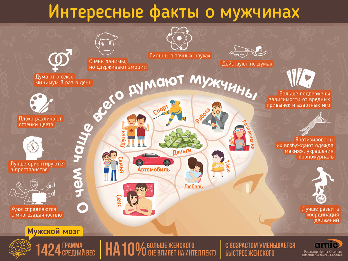 Почти 30% парней сохраняют номера телефонов своих «бывших» — вдруг, пригодится в дальнейшем. Почти 25% мужчин будут лгать своим любимым, лишь бы не причинить им боль. Внешняя привлекательность значит гораздо больше для мужчин, нежели сексуальные формы тела и фигуры.