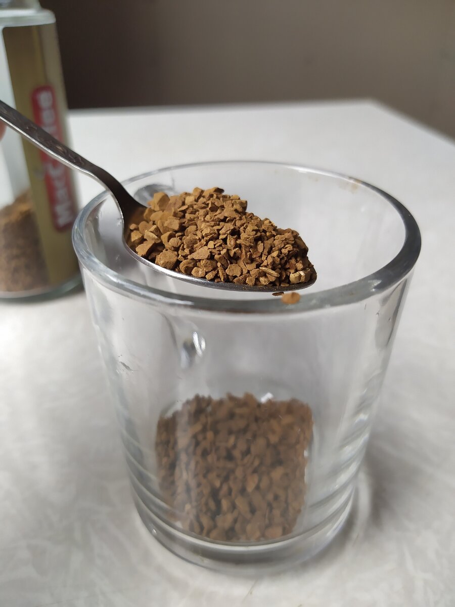 Привет друзья! Сегодня мы приготовим капучино как из кофемашины. Для приготовления нам понадобится: И так, засыпаем 2 чайные ложки растворимого кофе в кружку Далее следует засыпать 2 чайные ложки сахара Затем заливаем 5 чайных ложек кипятка После чего начинаем взбивать венчиком либо вилкой до получения густой пены Далее наливаем молоко, сверху заливаем пену, перемешиваем и готово. Вкусный, насыщенный капучино как из кофейни за 5 минут готов!