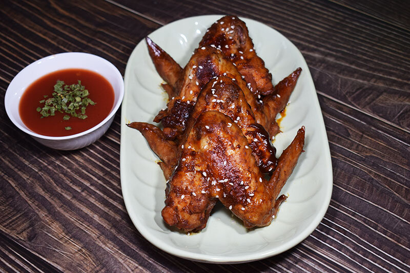 Примерное КБЖУ на 100 грамм: 145 ккал; Б - 9,8 г; Ж - 9,5 г; У - 5,5 г. Ингредиенты: - куриные крылья - 450 г; - жидкий мёд - 25 г; - соевый соус - 40 мл; - томатный соус - 65 г; - соль по вкусу; - сушеный чеснок по вкусу; - копченая паприка половина ч ложки; - черный молотый перец по вкусу; - тёплая вода до 100 мл; - кунжут для подачи Способ приготовления: Готовим соус Для приготовления медово-соевого соуса необходимо смешать жидкий мёд (если он засахарился, то растопите его на водяной бане или в микроволновой печи), соевый соус, томатный соус (можно взять кетчуп, томатную пасту или пюре томата), соль, чеснок, паприку (рекомендую копченую, она придаст приятный аромат), черный молотый перец и дать настояться 5 - 7 минут. Маринуем крылья Куриные крылья моем и подсушиваем бумажным полотенцем. Далее добавляем к ним медово-соевый соус (он должен максимально покрывать крылья) и оставляем на 10 минут промариноваться. Обжариваем крылья Крылышки обжариваем на разогретой сковороде по 1 - 2 мину