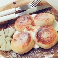 В глубокую ёмкость выкладываем творог, мешаем его вилкой. 2. Добавляем яйцо, размешиваем. 3. Добавляем сахар, сахар ванильный (всё это на глаз, по вкусу). 4. Добавляем муку, до тех пор, пока творожная масса не будет браться за руки + еще немного. 5. После чего высыпаем муку немного на стол, либо в тарелку, от готового теста отрываем небольшой кусочек и формируем небольшие шарики. Обваливаем их в муке и кладем на стол, либо на тарелку. 6. Затем всё это выкладываем на разогретую сковородку с растительным маслом, накрываем крышкой и жарим сырники на небольшом огне под крышкой. Постепенно наблюдаем за готовностью, переворачивая сырники с одной стороны на другую. 7. Подаются сырники со сметаной, сверху можно посыпать корицей и сахарной пудрой. Приятного аппетита!:) Ингредиенты на 4 порции : Приятного аппетита всем!