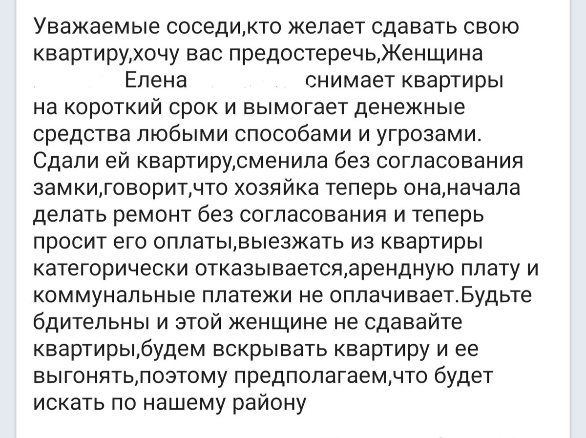 Это наверно новое движение. Я сдаю 2 квартиры . Как все опытные люди этого бизнеса, сталкивался с разными клиентами, проблемами. Сдавал посуточно, это одни проблемы, перешел на долгосрочную. За это время обзавелся несколькими чатами в ватсап и телеграм по тематике. Люди делятся контактами, советами и главное, людьми которым сдавать не надо. И вот таких сообщений за последние пол года я видел с пяток: Может кто знает? Это движение какое то? Может есть организатор? Это профессиональные шантажисты? Напишите в коментариях!