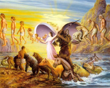 Согласно буддизму после смерти человек перерождается в другом теле и не обязательно человеческом. Первый мир- мир ада. В ад ведет чувство гнева с которым жил человек. Ад не вечен. Существует 16 адов 8 холодных и 8 горячих. Чем ниже ад тем более он населен. Второй мир- мир животных. В него ведет невежество. Третий мир- мир голодных духов. Это всем известные привидения. В мир голодных духов ведет чувство жадности. Четвертый мир- мир людей. В него ведет ревность. Пятый мир- мир полубогов. Полубоги хоть и могущественны но не очень счастливы. Они страдают от воин и интриг между собой, а также от зависти к настоящим богам. В этот мир ведет гордость и зависть. Шестой мир- мир богов. В него ведет блаженная рассеяность- когда все пять чувств уравновешены.