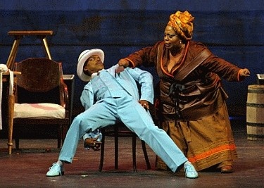 «Порги и Бесс» в Москве Великая наука маркетинг учит: если на этом рынке что-то продается плохо, попробуй выйти на другой. Глобальный маркетинг идет еще дальше: зачем париться, создавая каждый раз что-то новое? Раз обкатанный, хорошо продавшийся продукт необходимо последовательно толкать на все новых и новых рынках по всему миру - не скупитесь лишь на промоушене и дело выгорит. Приблизительно на этих принципах зиждется подход создателей перформанса "Порги и Бесс", на днях показанного в Питере и в Москве: режиссер Сьюзан Вильямс-Финч 13 лет назад поставила эту оперу согласно завещанию Гершвина исключительно с темнокожими певцами, а продюсер Питер Кляйн возит теперь ее по всему миру: буклет к спектаклю не без гордости сообщает, что продукция демонстрировалась в 49 из 50-ти американских штатов, а также в 17 странах мира на всех континентах. Дошла очередь и до нас - правда, в несколько урезанном виде: если в Питере был арендован Михайловский театр, чье новое руководство охотно покупает н
