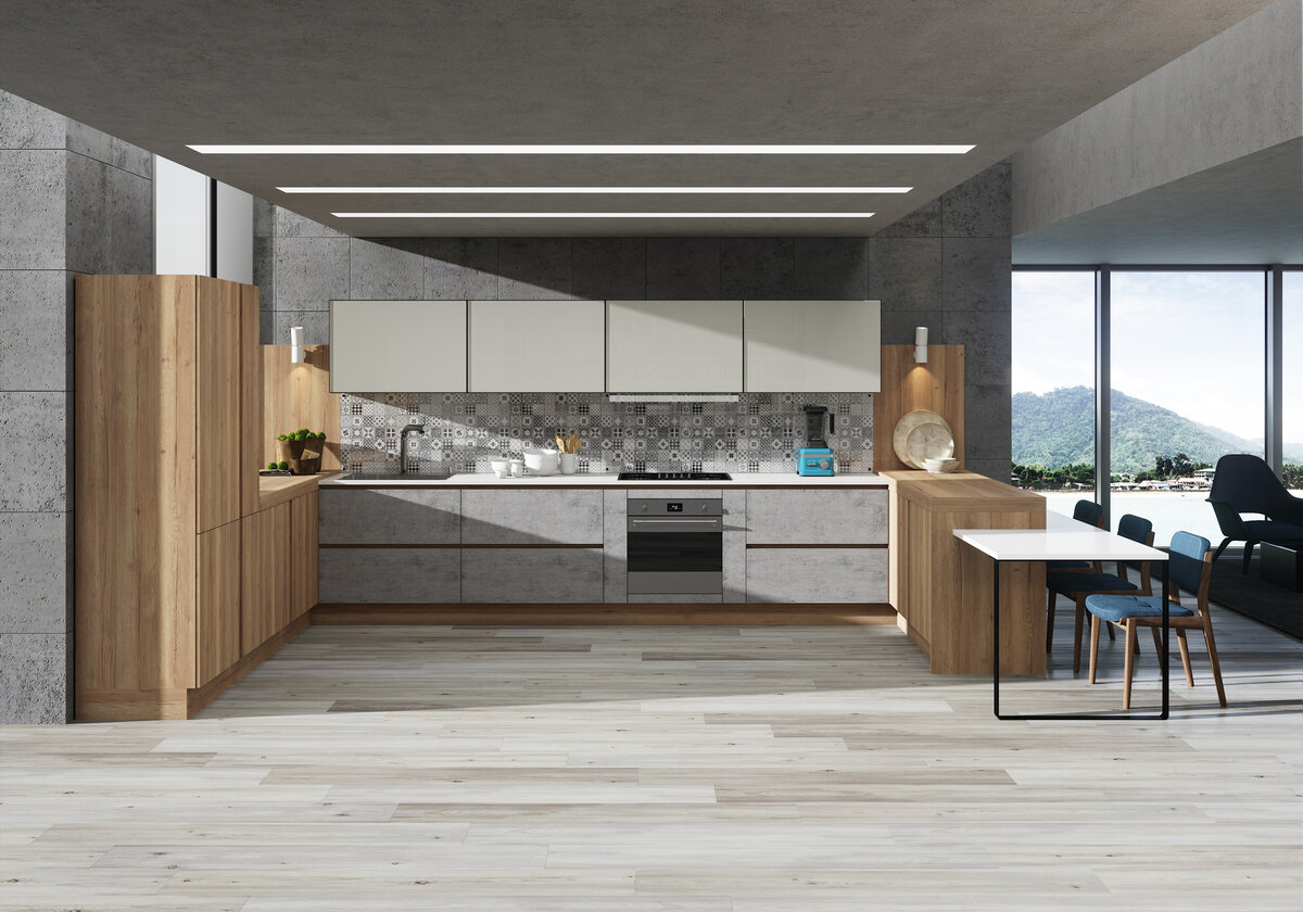 Эта кухня идеально подходит как для загородного дома, так и для городских квартир. Ее «природная» внешность прекрасно вписывается в урбанистические интерьеры. Гарнитур взял лучшее от свободолюбивого лофта и естественного скандинавского стиля.