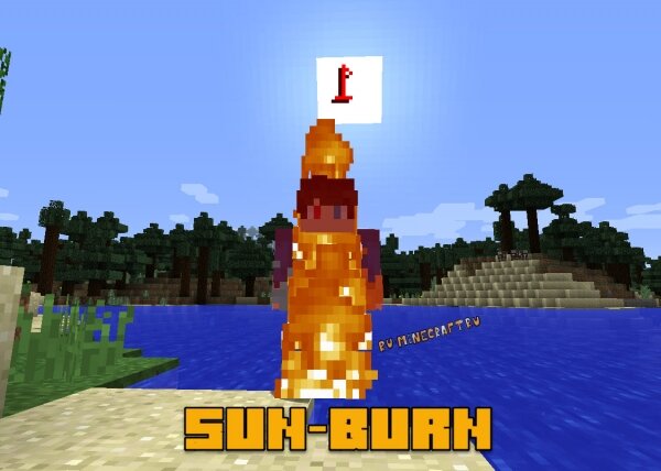 1 Sun-Burn Мод Sun-Burn - создан для хардкорных сборок в которых игрока будет поджигать солнце, ему придется прятаться под землей или в воде, либо носить броню, при помощи этого мода вы сможете это все настроить.