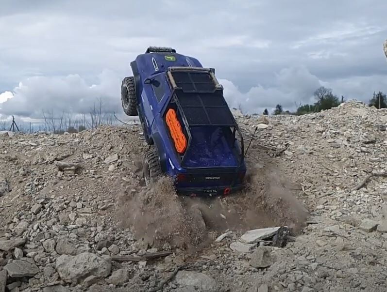 Для любителей замедленной съемки и активного башинга посвящается. Traxxas TRX 4 Sport умеет не только ползать по препятствиям но и красиво летать и прыгать через препятствия разрывая огромные ямы.