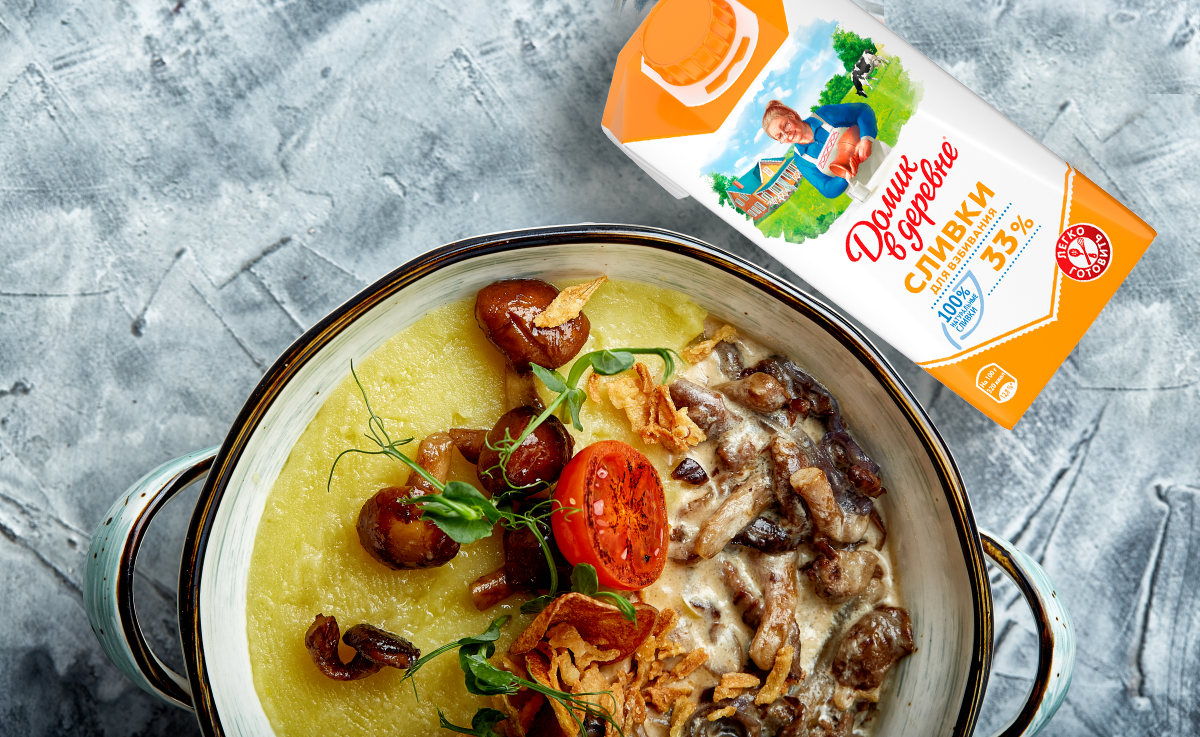 2. Для этого блюда важно выбрать качественные натуральные сливки, которые дают правильную густоту. Сливки «Домик в деревне» всегда оправдывали мои кулинарные ожидания, поэтому могу рекомендовать их в качестве ингредиента.