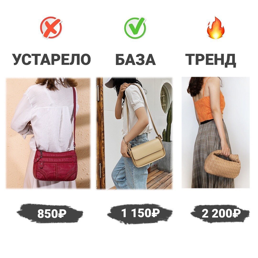 • отталкиваться лучше от функционала, который нужен (размер, форма, тип сумки), а не от тренда;