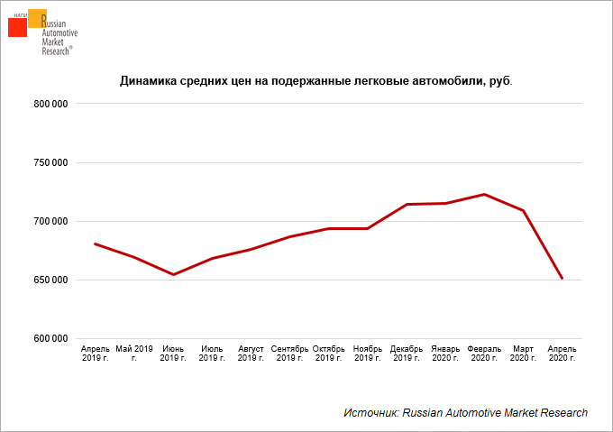 Агентство Russian Automotive Market Research проанализировало цены на подержанные легковые автомобили. Расчет средних цен выполнен на основе объявлений о продаже автомобилей с пробегом на электронных площадках. В апреле 2020 г. средние цены на подержанные легковые автомобили сократились на 4,2% по сравнению с апрелем 2019 г. Снижение цен на подержанные автомобили продолжается из-за общей неопределенности на фоне эпидемии коронавируса, низкой покупательной способности населения вследствие падения доходов. Кроме того, сокращение средней цены связано с ростом количества предложений бюджетных моделей.