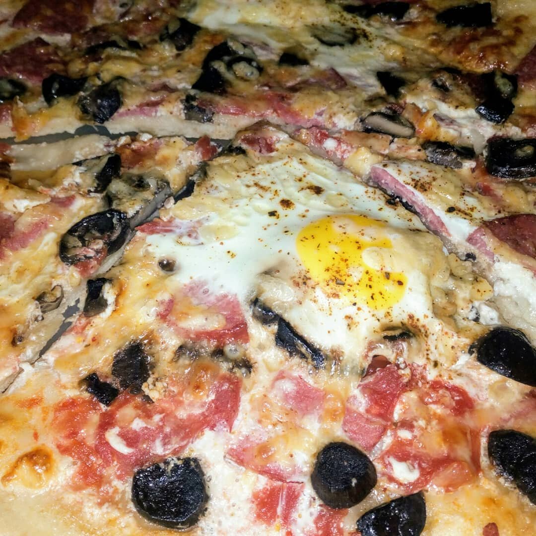 Здравствуйте, друзья! Такая пицца никого не оставит равнодушным! Вкусная,сочная! Надо делать сразу двойную порцию!!! Тесто дрожжевое. Очень простое в приготовлении. В теплую воду добавляем дрожжи,сахар и 1 столовую ложку муки. Оставляем на 15 минут в покое. Затем добавляем соль, оставшуюся муку (обязательно просеиваем), растительное масло, перемешиваем и оставляем еще на 10-15 минут в покое. Затем присыпаем рабочую поверхность мукой и вымешиваем тесто руками около 5 минут. Делим тесто на 2 части. Тонко раскатываем. Смазываем основу соусом (у меня майонез и измельченный консервированный помидор). И выкладываем все, что любим: колбасу, грибы, сыр. Я решила сегодня добавить еще яйцо. Получилось интересно и вкусно. Отправляем нашу пиццу в разогретую до 200° духовку на 12-15 минут. И быстро приступаем к дегустации!!! Ингредиенты: Тесто теплая вода 1 стакан дрожжи сухие -1 чайная ложка сахар - 1 столовая ложка соль - 0,5 чайной ложки масло растительное 1 столовая ложка мука (на