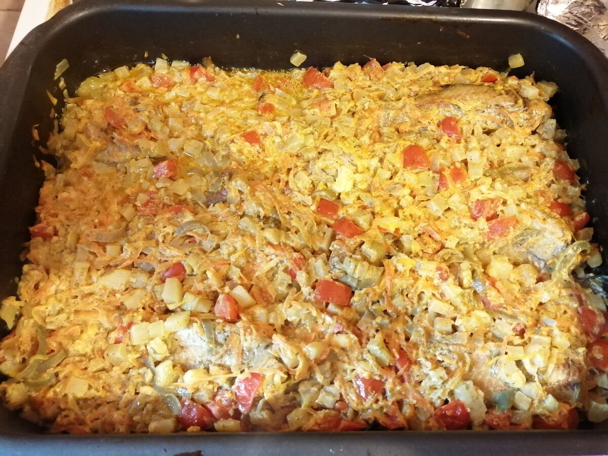 Главное условие, что их должно быть столько же, сколько рыбы. Если у вас килограмм рыбы, значит и овощей берём килограмм. Тогда получается сочное и ароматное блюдо.