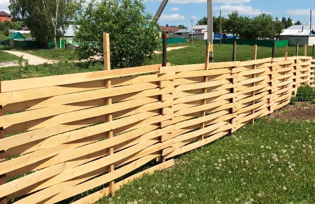 Мои соседи люди не богатые, но с хорошим вкусом и большой фантазией. Хочу вам показать интересные варианты самодельных заборов, которые были возведены в нашем содовом товариществе. Плетеный забор из досок Столбы вкопаны на расстоянии 2,7 м. Между ними стоит двухметровый брусок 50x50. Доски 20x100 второй сорт. Специально подошел посмотреть наличие гвоздей и не обнаружил их. Забор выглядит красиво, но все же доски ничем не закреплены, а значит их можно легко снять. Забор строят, чтобы уберечь, то что за ним. А тут за одну ночь можно лишиться самого забора. Забор из веток акации Застал соседа за работой. Сказал, что акация - дерево крепкое, особенно когда подсохнет. По его словам, этому забору ничего не страшно. Не скажу, что этот забор можно назвать идеальным воплощением мечты, но и у него есть свои плюсы. Во-первых, он бесплатный. Во-вторых, притягивает взгляды абсолютно всех прохожих. В-третьих, выполняет свои главные функции - показывает границы участка и создаёт преграду для люд
