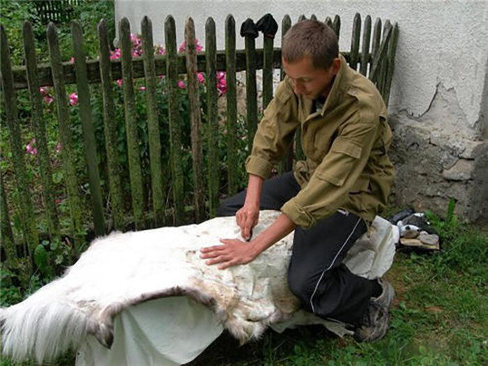 Грех выбрасывать шкуру, снятую с туши убитого животного, будь то трофей удачной охоты, домашняя коза, овца или нутрия. Познакомьтесь с дешевым и простым методом выделки шкур, который, по моему мнению, доступен каждому. Я пользуюсь им для выделки шкур овец, оленей, сурков, кроликов и коз. Но метод подходит для выделки шкур всех млекопитающих, в особенности, если вам хочется сохранить мех. После такой выделки шкурка становится мягкой и удобной в работе, например, для изготовления вещей, требующих кройки и шитья.