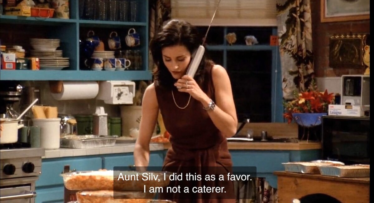 Как мы уже выяснили,изучать язык,особенно разговорную речь,смотря любимые фильмы и сериалы,гораздо увлекательнее,чем постоянно учить наизусть те или иные слова,конструкции и фразы (однако изучение новых слов,безусловно,необходимо). Что же,перейдём к новым словам? В этой фразе нас больше интересует первая её часть,а именно "..i did this as a favor".Как же мы это переведём?Вы сделали что-то другому человеку,в чём-то ему помогли,не прося ничего взамен,а он остался недоволен? I did this as a favor!-Я сделал это из одолжения/Я сделал вам одолжение! Но не будем оставлять вторую часть фразы без внимания.Продолжим на примере той же ситуации.Кому-то не нравится ваша помощь,которую вы предлагаете абсолютно безвозмездно? I am not a caterer!-Самый верный перевод этого выражения,пожалуй,будет звучать как "Я к вам не нанимался" или же,если переводить дословно,"Я не ваш поставщик",что вполне актуально для ситуации в этом эпизоде. Следующая фраза является одной из самый общеупотребительных,наравне с у