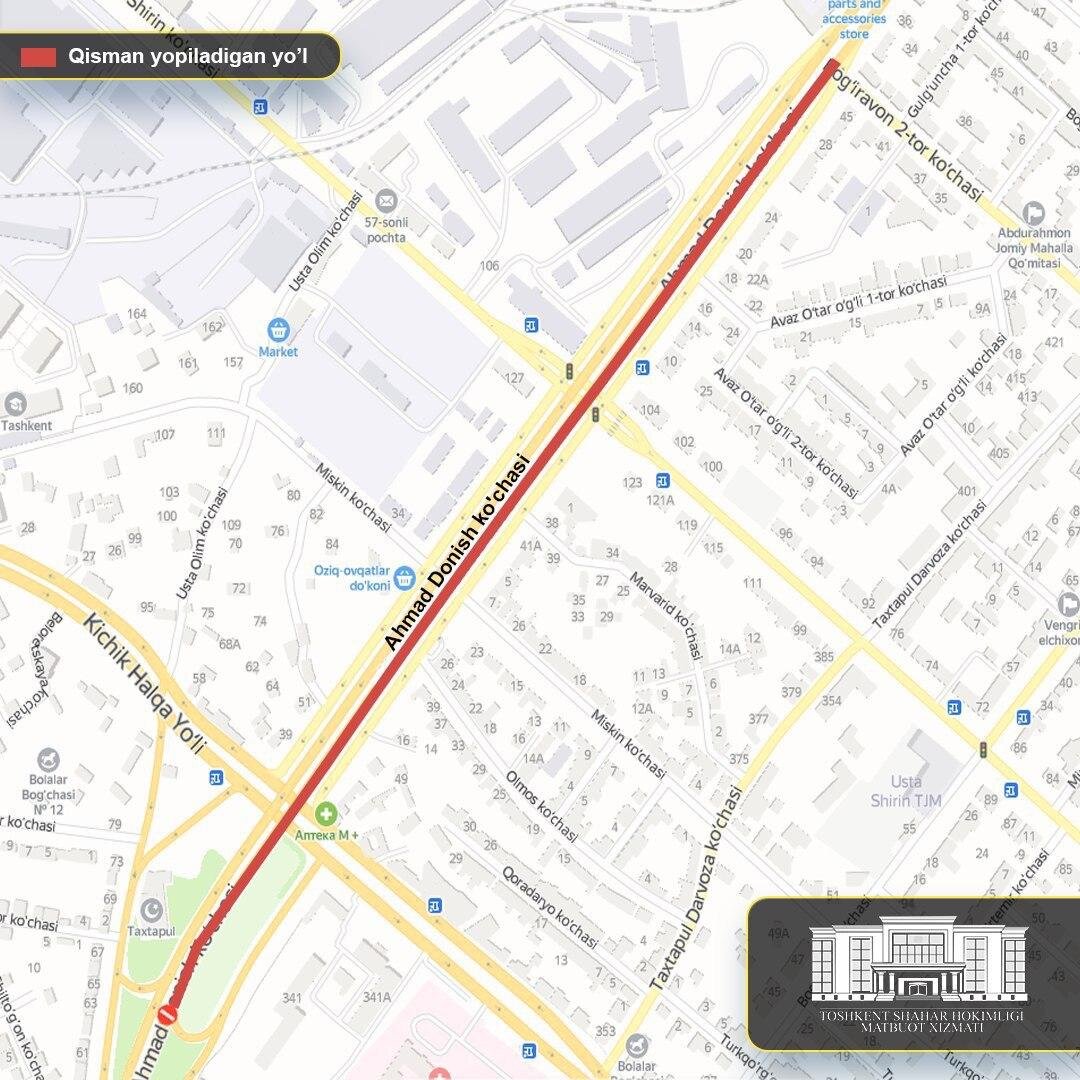Также будут проведены работы по реконструкции мостов, расположенных между пересечением улицы Ахмада Дониша с вторым проездом улицы Богиравон и торговым центром Mega Planet. В связи с чем, определенная часть автомобильного моста над ТКАД (две из трёх полос движения дороги) будут временно закрыты для движения автомобилей.