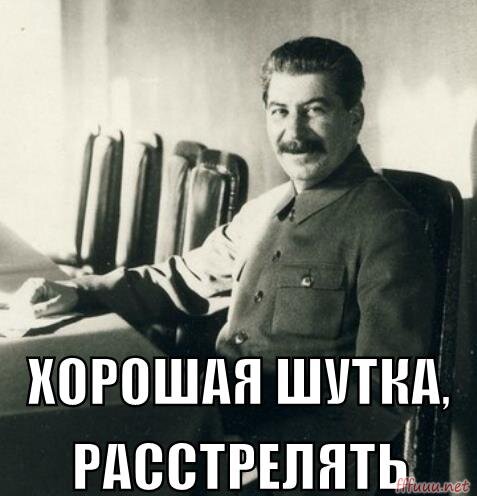 1)Как-то на приеме Сталин спросил у известной актрисы Любови Орловой: «Тебя муж не обижает?» Орлова кокетливо улыбнулась: «Иногда обижает, но редко». Сталин спокойно продолжал: «Скажи ему, что если он будет тебя обижать, то мы его повесим». А муж Орловой, кинорежиссер Григорий Александров, присутствовал тут же. Посчитав, что настала его очередь вмешаться в шутливый разговор, он с улыбкой же и спросил: «За что повесите, товарищ Сталин?» На что совершенно серьезно Сталин ответил: «За шею, товарищ Александров». 2)Жукова вызвали на совещание к Сталину. Выходя из кабинета Сталина, Жуков сказал: — Жопа с усами! Это услышал Берия, зашел в кабинет Сталина и сказал: — Товарищ Сталин! Когда товарищ Жуков вышел из Вашего кабинета, он сказал «Жопа с усами». — Вызвать ко мне товарища Жукова! Жуков пришел. — Товарищ Жуков! Когда Вы вышли из моего кабинета, вы сказали «Жопа с усами». Кого Вы имели в виду? — Гитлера, конечно! — Так. А Вы кого имели в виду, товарищ Берия? 3Мужики в деревне собрал