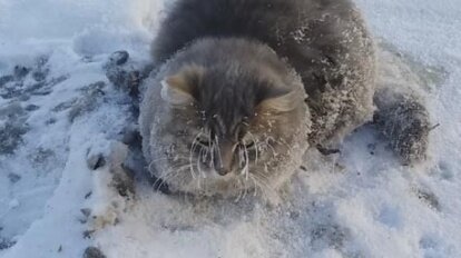 Эту историю мне рассказала моя подруга Катя, когда приехала ко мне в гости в Новосибирск. Это произошло зимой, ночью температура опустилась ниже 35 градусов. Она обнаружила под автомобилем, вмерзшего в заледенелую землю, кота. Видимо когда машина только подъехала, она была еще теплой. Поэтому кот и забрался под нее погреться. А когда заснул, машина постепенно остыла, и он оказался в заледеневшей земле. У него вмерзли живот и лапы. Катя позвала на помощь супруга, и они вместе стали спасать кота. Катя держала котика за шкирку, чтобы тот не вырвался от испуга. А Роман поливал из ведра горячую воду. Под действием горячей воды наледь оттаивала. Потребовалось несколько ведер кипятка, чтобы освободить из плена замерзшего кота. Бедное животное не могло шевелить лапами. Катя завернула его в полотенце, и они отвезли его в ближайшую ветеринарную клинику. Там ему сделали противовоспалительный укол. Врач, осматривавший кота, сказал, что котик совсем молодой, ему семь-девя