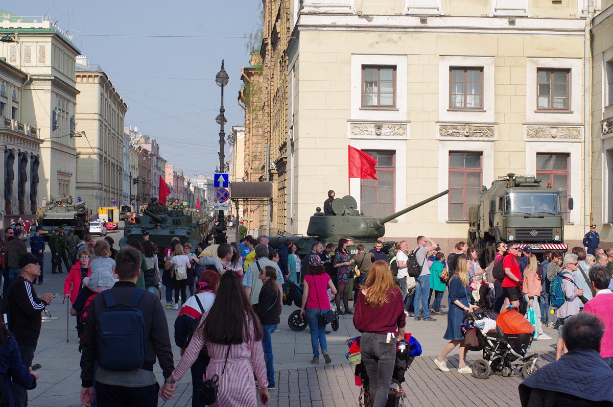Я всегда фотографирую обычных людей, зрителей, когда делаю фоторепортаж с какого-нибудь мероприятия. Мне кажется, такие фотографии позволяют лучше почувствовать атмосферу события. Обычные люди — то, как они выглядят, как одеты, выражения их лиц — дают больше для понимания происходящего, чем самый детальный фотоотчёт. Фотографии зрителей репетиции парада Победы на Дворцовой площади я сделала год назад. Сейчас эти фотографии выглядят очень необычно. Толпа людей без масок и никто не старается держать дистанцию. Велосипедисту приходится идти пешком и вести велосипед рядом с собой, чтобы миновать особенно людное место. В какую сторону не посмотришь, везде видишь туристов из разных стран, особенно многочисленны туристы из Китая. Очень хочется, чтобы эти фотографии снова воспринимались как привычное отражение городской жизни.