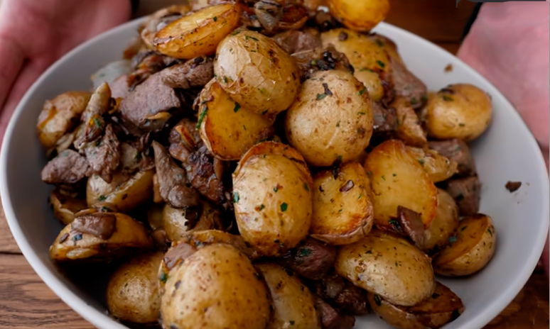 Сегодня я расскажу, как можно пожарить картофель в казане на даче или на природе. Еда на свежем воздухе всегда имеет особенный вкус, и я обещаю, что это блюдо не оставит равнодушным ваших гостей. Готовить его очень просто, перечень необходимых ингредиентов будет справа. Приступаем к приготовлению Все нарезанные ингредиенты сортируем по отдельности, так как время приготовления у них разное, и обжаривать мы их будем по очереди. Нарезаем достаточно крупно 3 большие луковицы. Затем то же делаем с грибами – это могут быть шампиньоны, вешанки, лисички. Теперь подготавливаем мясо, также, как и грибы на ваше усмотрение, это может быть свинина, говядина, курица. Режем на кусочки (чуть крупнее, чем на гуляш). Отправляем нарезанное мясо в емкость, добавляем к нему немного перца, соли и подсолнечного рафинированного масла. Совсем чуть-чуть, потому что будем обжаривать это с минимальным количеством масла. Картофель можно взять любой, у меня молодой с тонкой кожицей. Я его тщательно мою и высу