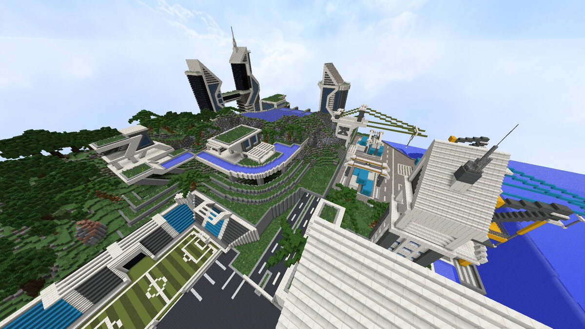 Cтроители продолжают создавать площадки для RolePlay серверов. Карта Large Futuristic City — это курортный футуристичный город на отдельном острове. Здешняя архитектура вдохновлена изображениями мегаполисов будущего от самых разных авторов. Всё выполнено в светлых тонах и создаёт лёгкую атмосферу. Декоративные здания с площадками, парковками и зонами развлечения созданы для больших толп игроков. В этом городе мечты можно поселиться в квартиру многоэтажки или построить собственный домик на берегу шикарного пляжа. Устраивайте праздники на площадях и фермы на специально выделенных балконах, освещаемых солнечными лучами. Здесь есть все удобства для комфортного проживания. Карта пока на стадии разработки, поэтому готово только внешнее оформление, внутри зданий нет интерьеров. Подробнее можно посмотреть в обзоре автора. СКАЧАТЬ