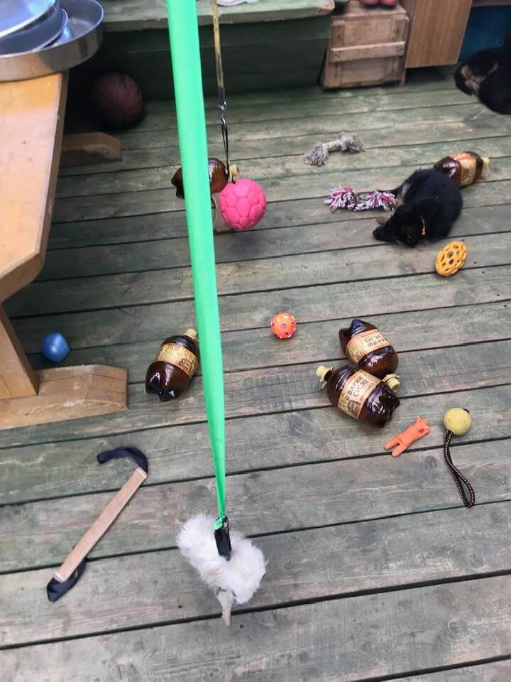 После того, как пол равномерно выстелен синтепоном и бумагой, нужно дать отдых челюстям и нагрузку на другие органы растущего шенячьего организма. Образовавшиеся на полу лужи и кучи тщательно растаптываются по всей свободной от мебели поверхности.
