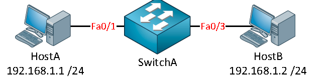 SwitchA(config) interface fa0/3