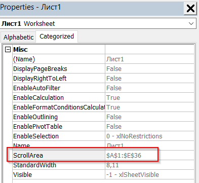 Запрет прокрутки в Excel - очень важная функция, если мы не хотим, чтобы пользователи просматривали информацию на листе Excel за рамками разрешённого диапазона. Для этого нам нужно установить диапазон прокрутки для листа, сделать это можно на вкладке "Разработчик" (в видео будет показано как её добавить если ей не будет на ленте вкладок). Жмём кнопку "Visual Basic", затем щёлкаем имя нашего листа (Лист1, Лист2, Лист3 и т.д.), чуть ниже отобразится свойства данного листа. Нам нужна закладка "Categorized" и пункт "ScrollArea". Пишем в него нужный нам диапазон (A1:E36 или любой другой) и жмем Enter! Запрет прокрутки установлен! Пользователь не сможет спуститься ниже обозначенной границы! К сожалению способ работает только до закрытия книги. Если пользователь откроет книгу снова, запрет исчезнет. Предлагаю также посмотреть небольшой видеоурок!
