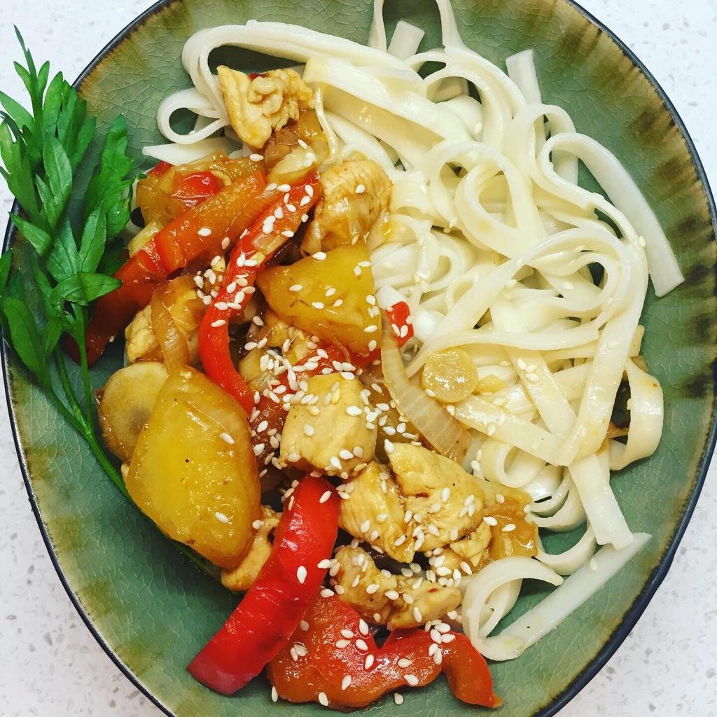 Всем доброго дня❤️ Сегодня на ужин я готовлю КУРОЧКУ В КИСЛО-СЛАДКОМ СОУСЕ и делюсь с вами рецептом приготовления. Нам понадобится: Я использую соус фирмы SEN SOY, мне очень нравится👍. Все ингредиенты нарезаем и обжариваем по отдельности на сковороде, на большом огне, буквально по 3 минуты. Затем все продукты отправляем в кастрюльку, немного солим и добавляем кисло-сладкий соус, так же чуть меньше половины стакана воды. Тушим на небольшом огне примерно 10 минут. На гарнир я использую любимую пшеничную лапшу, детям больше нравится со спагетти🙂Всем приятного аппетита!
