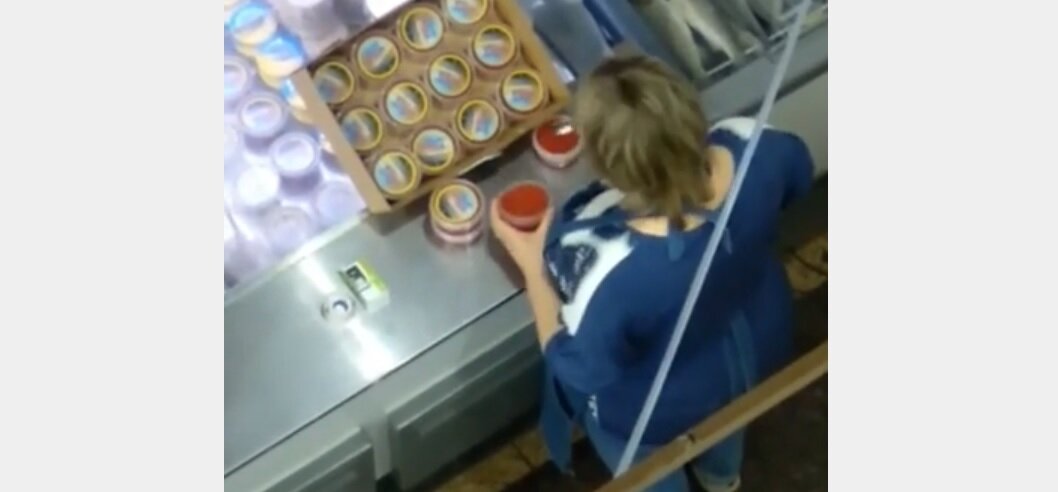 ИкраИнфо Трагикомичный ролик из липецкого торгового центра попал в соцсети и моментально разлетелся по интернету. Продавщица, не отходя от рабочего места, успевает и покупателей обслуживать, и демонстрировать любопытный способ перефасовки красной икры. Женщина открывает подготовленную к продаже пластиковую банку с деликатесом, наполняет из нее ложку икры и перекладывает в пустую банку. Аккуратно и не спеша выравнивает икру, закрывает испорченную упаковку и кладет на прежнее место на прилавок. Берет новую банку с деликатесом, открывает и проделывает тот же номер. И так далее. На видео видно, что «бесплатная» банка красной икры уже почти полная. Ловкость рук - и никакого волшебства. Эксперты рынка рекомендуют: Читать в источнике