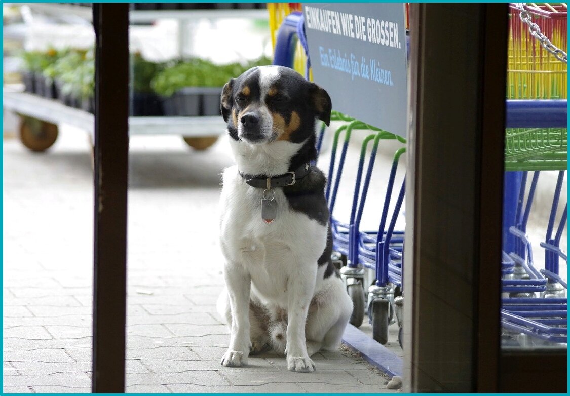 Девушка вновь зашла в магазин и удивилась: тот самый пёс сидел на том же месте с всё такой же опущенной головой и грустными глазами...