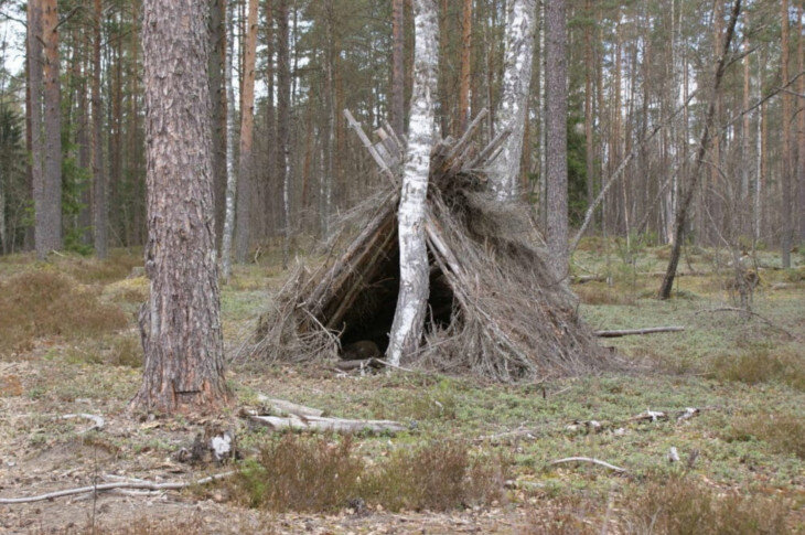 Постройка шалаша в лесу может происходить по разным технологиям, основным материалом у меня будет дерево. Определенные породы пригодятся для возведения каркаса, а другие отлично подойдут для импровизированной кровли. Со всеми нюансами постройки лучше заранее разобраться, ведь с наступлением вечера шалаш должен быть готов, на раздумья времени не хватит. Основные детали конструкции Все начинается с каркаса, для его качественного возведения мне нужны толстые ветки деревьев, без листвы и прочих сучков. Например, береза по своей природе не может похвастаться большим озеленением, ее можно смело использовать в этих целях. Заготовки не должны быть трухлявыми, если вы собираете их с земли, это важно для безопасного нахождения в шалаше. Дуб отлично подойдет для реализации задуманного, так как добраться до веток с листвой получается редко они зачастую начинают расти достаточно высоко. Все максимально полезное что можно найти от этого величественного растения – это упавшие бревна с сухими желудями