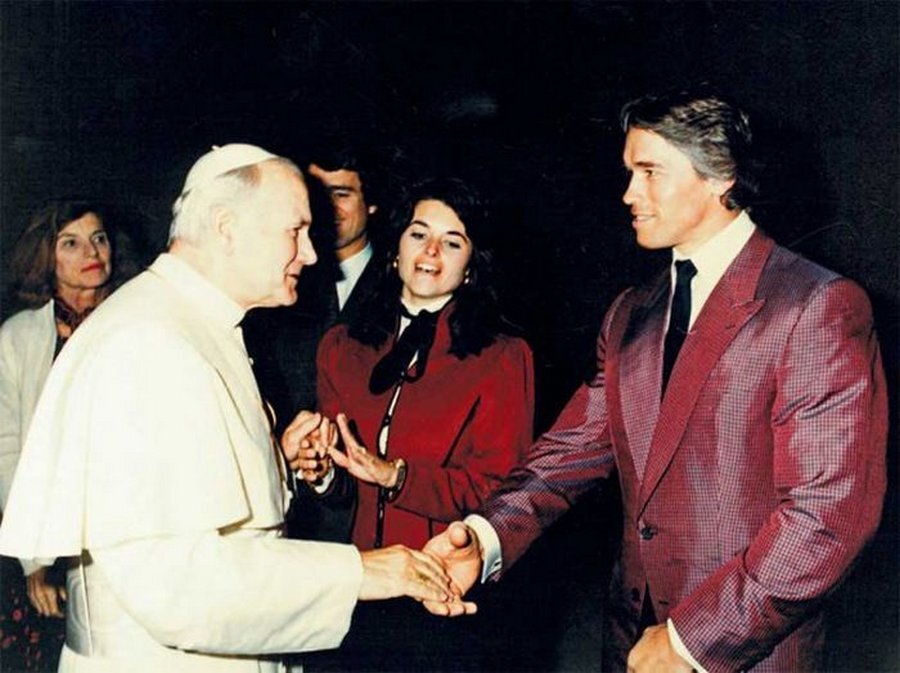 Арнольд Шварценеггер личность уникальная и неповторимая, а это значит что наблюдать и узнавать о жизни велиткого актера, культуриста и политик, крайне интересно! пускай здесь мы не будем блистать его могуими мышцами ,разве что в порядке исключения, но поглядеть на многие уникальные кадры, всё таки стоит вашего внимания! Так на титульном снимке вы можете видет Арнольда во время его аудиенции у папы Иоанна Павла II. Возможно вы не в курсе, но Арнольд крайне религиозный человек, и вера была у него а первом месте. Здесь вы можете лицезреть Арни на самой первой встрече со своим кумиром. Как пишет сам Арнольда, это было незабываемое и очень волнующие событие. Встреча звезды бодибилдинга и Арнольда происходила в лондонском тренажерном зале Уага Беннета в 1966 году. Думаю что многие из вас видели редкие снимки Арнольда в компании странных личностей, порою и откровенного характера. Объясняется это тем, что Арнольд в Голливуде знакомился с разными личностными. В том числе и с режиссером Ром