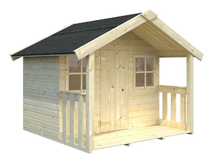 Строительство детского домика начинается с подготовки. Нам понадобится следующий инструмент: уровень, рулетка, уголок, карандаш, пила, шуруповерт и крепеж (саморезы, уголки и т.д). В итоге мы должны будем получить, следующий домик: Делаем расчистку места застройки. Домик будем устанавливать на фундаментные блоки. Нижнюю обвязку сделали из доски 50х150, предварительно обработанной антисептиком. Данный размер доски для детского домика избыточен, но хуже от этого не будет. Размер нижней обвязки должен соответствовать полу домика. Важно соблюдать диагональные размеры, для того что бы пол ровно встал на нижнюю обвязку. Размеры пола: После сборки нижней обвязки обязательно подкладываем гидроизолирующий материал на блоки. Увеличиваем жесткость пола дополнительной поперечной балкой. Домик будем собирать из отдельных секций. Каркас выполняется из бруска 50х50. Стенку делаем из сухой шпунтованной доски. Передние секции с окошками: Задняя и боковые глухие секции: Верхние секции крыш
