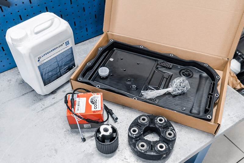 Шестое поколение BMW 5-Series пользуется успехом у автолюбителей. Подвеска и тормозная система этих автомобилей чувствительны к условиям эксплуатации, поэтому к нам часто обращаются владельцы с целью устранения различных неисправностей. На этот раз в наш автотехцентр приехал BMW F10 для замены тормозных колодок и проведения диагностики подвески. Владелец был обеспокоен появлением ощутимых вибраций при ускорении. Диагностика и осмотр подтвердили необходимость замены задних тормозных колодок и выявили повреждения эластичной муфты карданного вала. В соответствии с пожеланиями владельца при замене были использованы тормозные колодки TRW и оригинальная муфта. Чтобы подобраться к муфте потребовалось снять защиту, теплоизоляционный экран, кронштейн крепления выхлопной трубы и вывесить выхлопную систему. Кардан отсоединили от коробки передач, затем открутили болты крепления муфты. Затем установили новую муфту и выполнили сборку в обратной последовательности. От состояния муфты зависит степень