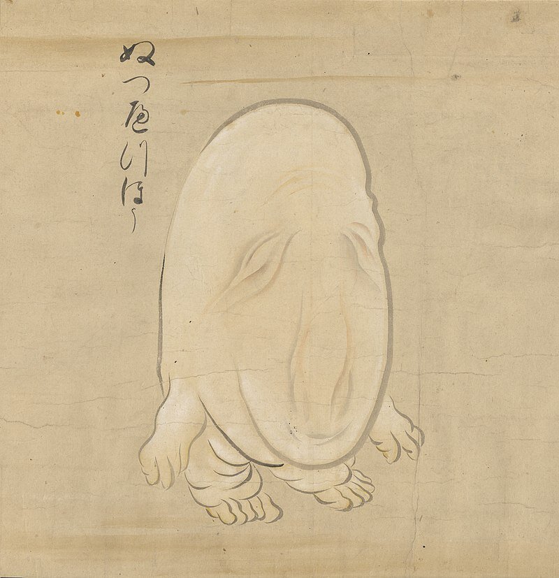 Приветствую, друзья, если хотите узнать больше о редких и малоизвестных существах 🦖 из мифов и легенд по всему Миру – подписывайтесь 👆, комментируйте и оставайтесь с нами. 🐉 Необычный и жутковатый ёкай из Японии. Термин «Ёкай» довольно широк и означает что-то вроде нашего призрака, духа или прочей нечисти. Изображают этого монстра как каплю мяса с чертами лица и множеством нависших морщин. В древних текстах у него нет почти ничего, кроме имени и изображения и почти нет пояснительного текста об этом духе, кроме того, что это: «есть монстр (бакемоно) под названием nuppeppō. У него нет ни глаза, ни уха» (ぬ っ ぺ っ ぽ う)といふ化けもの有り.目もなく耳も無く). В старой иллюстрированной рукописи (год неизвестен), хранящейся в библиотеке Шисуи, Инуи Юхэй изображён ёкай по имени «нуббехх» (ぬ っ べ っ ほ う), и описывается так: «это существо напоминает сильно замаскированную старую жабу». Эта картинка Нуппеппо сопровождается словами «монстр, очень сладкий, как картофель с четырьмя короткими конечностями». Синго З