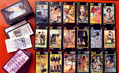 Итальянский художник Мило Манара известен как автор эротических романов-комиксов. По сути его Таро — это и есть фрагменты путешествия созданных им героев, большинство из которых — женщины. Колоду нельзя назвать очень молодой — всё-таки первое издание увидело свет 18 лет тому назад — в уже достаточно далёком от нас 2000 году. Удивительно, но эти откровенные, беспристрастные карты быстро нашли своих поклонников, поэтому переиздавалось Таро Манара ещё четыре раза — в 2003, 2005, 2006 и 2012 годах. Сегодня именно Манару называют лучшей колодой для просмотра всех тонкостей и нюансов любовных отношений, хотя до сих пор находятся ярые ненавистники этих карт, которые называют их не иначе как пошлостью, развратом и бессмысленными картинками. Что ж, сколько людей, столько и мнений. Лично я с Манарой прекрасно сработалась, но об этом — позже.