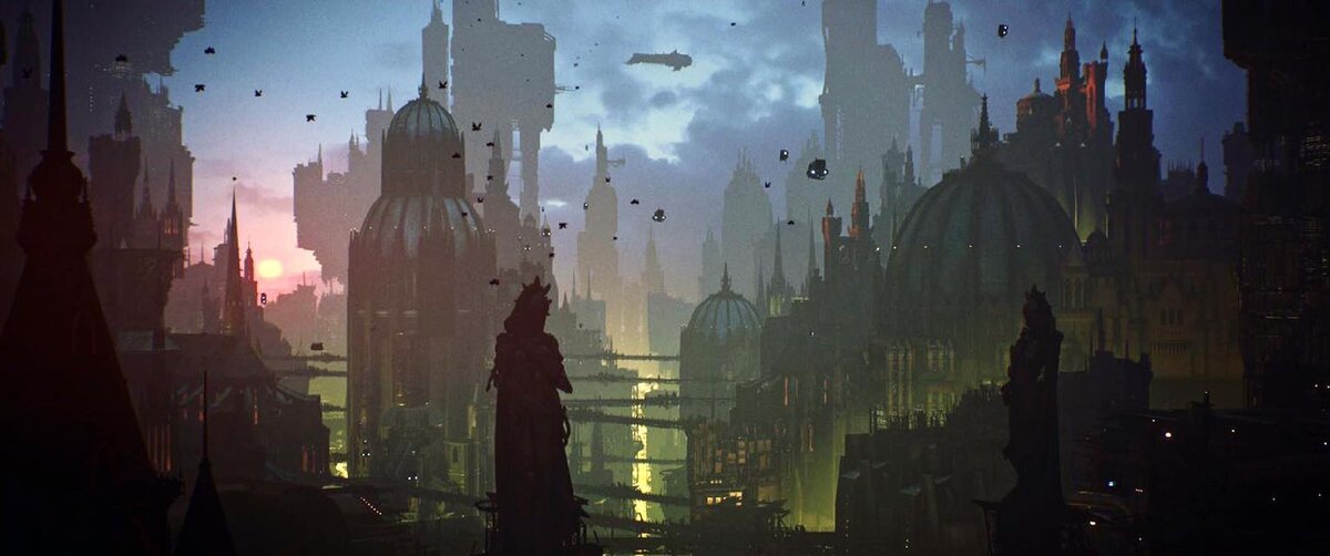 Она стояла у кристалл-флексового панорамного окна на высоте около километра над землей. Помещение находилось на самом верхнем уровне одного из тысяч шпилей, торчавших тут и там среди бесконечных кварталов, раскинувшихся во все стороны до самого горизонта. Далеко на востоке едва заметные лучи восходящего солнца пытались пробиться сквозь пелену клубящихся облаков, бросая тусклые отсветы на стальные и адамантиевые конструкции.