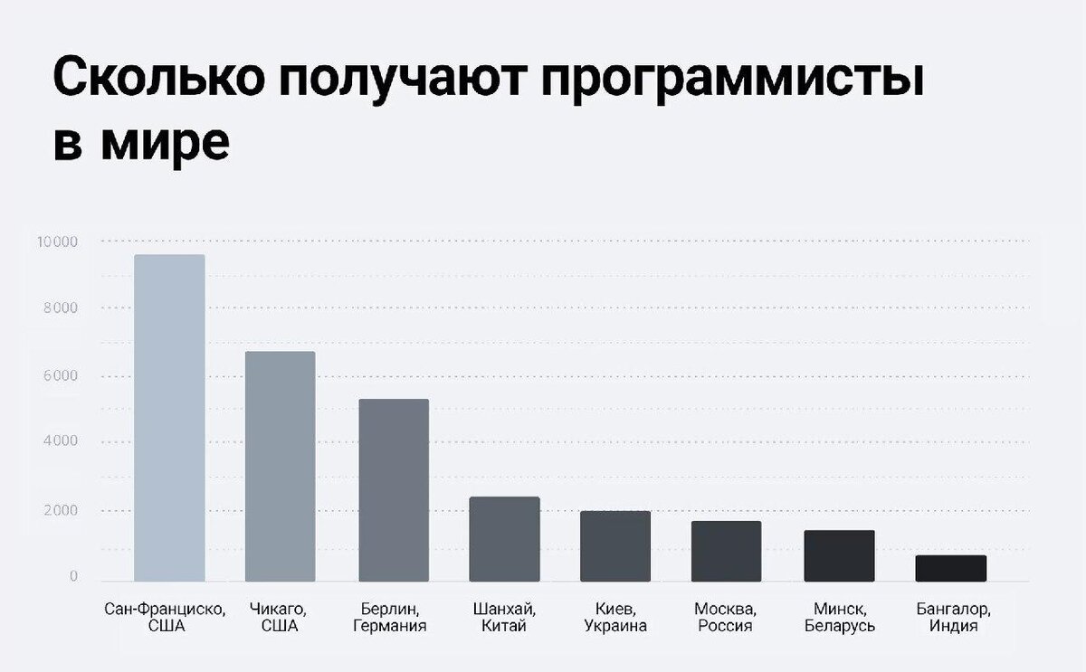 Это абсолютные цифры, но в реальности нужно учитывать и другие факторы: - подоходный налог с зарплаты (в большинстве стран прогрессивная шкала налогообложения, когда налог растет с увеличением зарплаты); - стоимость жизни (аренда жилья, коммунальные услуги, продукты, транспортные расходы); - социальное обеспечение. Больше информации читайте в нашем телеграм канале @coderoll