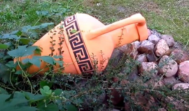 Чтобы не говорили, а наш народ рукастый, при желании может все. Вот и фигуры для сада, да еще какие умеет делать. И не жадничает, а делится своим мастерством. Отличным украшением будет фигура для сада в виде античной амфоры. Думаю, что по такому принципу можно сделать и кувшин для сада. Ведь деревенский уголок – это удивительное место в нашем саду. Как сделать деревенский уголок смотрим здесь. Для выполнения такой фигуры для сада нам понадобятся: Если будем делать водопад, как у мастера, то нам потребуются: Процесс изготовления фигурки для сада В деревянную подставку вставляем металлический прут с резьбой, на который будем нанизывать круги из пенопласта. Вырезаем 18 кругов разного диаметра (но думаю, можно количество кругов изменить). Диаметр первого круга - 14 см. Далее вырезаем 9 кругов, диаметр каждого последующего круга увеличиваем. Круги 11,12,13 уменьшаем в диаметре. Следующие 5 кругов (14,15,16,17,18) с одинаковым диаметром в 13 см. В каждой детали просверливаем по два отв