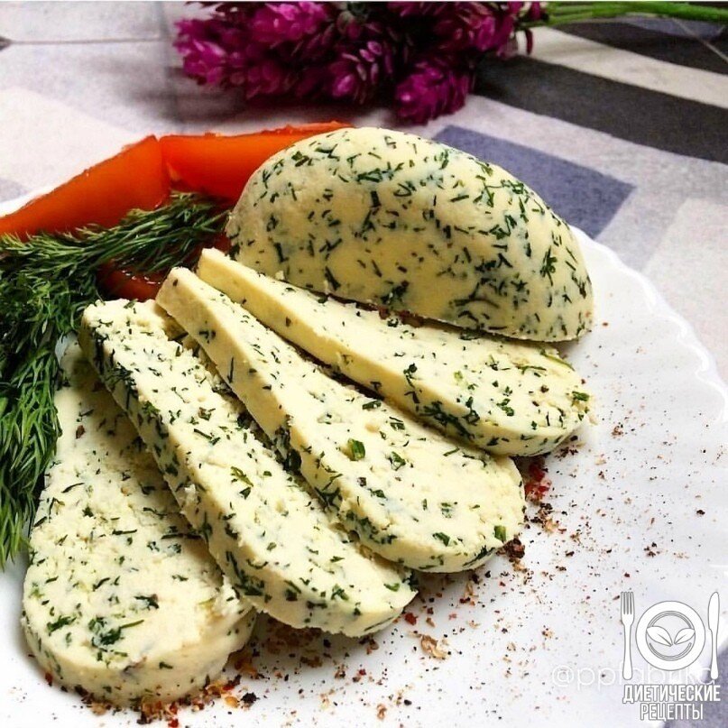 В кастрюлю вылить молоко и кефир, поставить на плиту. Не доводя до кипения, влить тонкой струйкой в горячую молочно-кефирную смесь слегка взбитые с солью яйца. Довести до кипения и варить эту смесь, помешивая, на небольшом огне несколько минут до момента отделения сыворотки. Снять с огня, дать остыть 1–2 минуты и добавить измельчённую зелень и кр. перец, выдавить зубчик чеснока (или что-нибудь на свой вкус). Вылить массу в дуршлаг, выстеленный марлей, сложенной в 2 слоя. Выровнять сырную массу ложкой. Закрутить марлю узлом, дать стечь сыворотке. Потом марлю раскрутить, образовавшийся кругляшок сыра прикрыть краем марли, сверху уложить блюдце и поставить на блюдце какой-нибудь гнёт (подойдёт, к примеру, банка с водой, закрытая крышкой). Убрать в холодильник на несколько часов. И всё. Например, вечером сделали и убрали в холодильник, а утром уже можно есть на завтрак. Отлично с чё