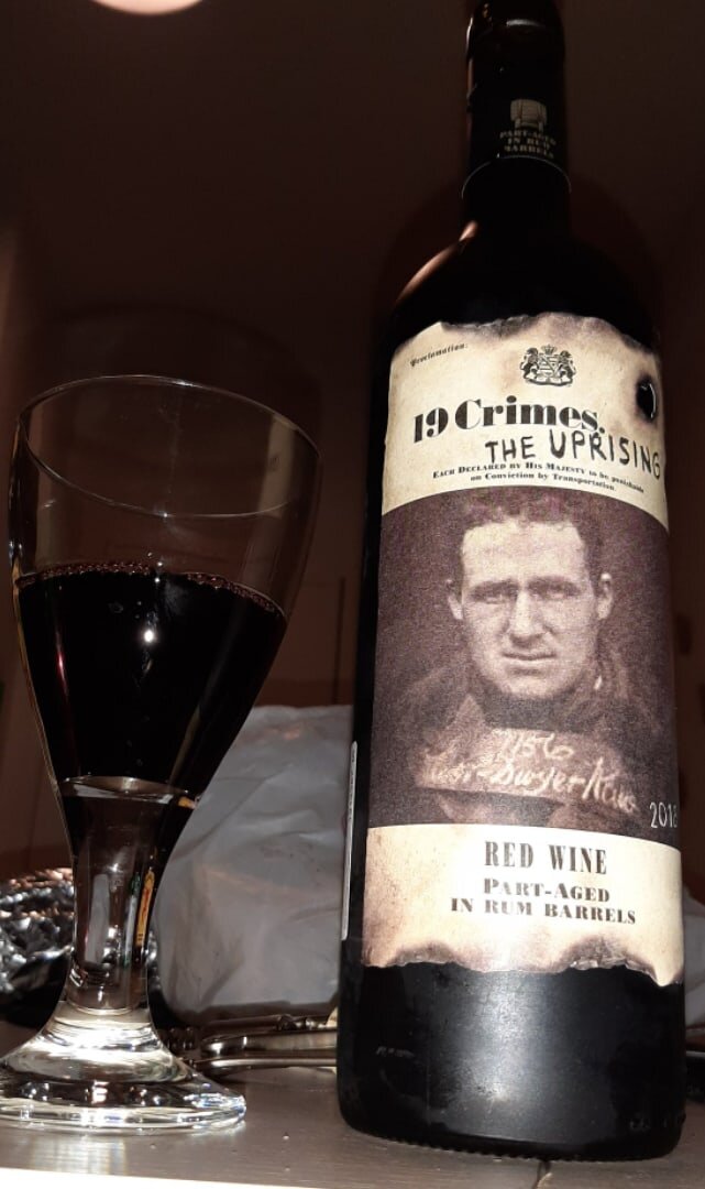 Красное сухое вино из Австралии 15 оборотов, сорта винограда: Шираз 50% Каберне Совиньон 35%, Гренаш/Гаранча 15% Вина бренда "19 преступлений", называются так в память о 19 видах преступлений, за которые можно было из Великой Британии уехать далеко и надолго в ещё тогда колониальную Австралию. Собственно, 19, казалось бы, не так много, учитывая несметное количество разных злодеяний совершаемых в мире каждый божий день, но в этот перечень входили такие "непростительные" поступки... Ох, ну например: кража рыбы из водоёмов, кража дерева из леса, воровство на любую сумму, начиная с одного шиллинга! (Не знаю курс шиллинга к рублю, но предполагаю, что на "в особо крупном" не тянет, хоть старичок рубль и просел знатно). Нет, конечно, там были и серьёзные преступления, типа политических мятежей, но обниматься с кенгуру можно было уехать вообще без проблем. У бренда есть вина посвящённые некоторым из этих преступлений. Конкретно "Восстание", то что на картинке ниже, как вы могли уже догадать