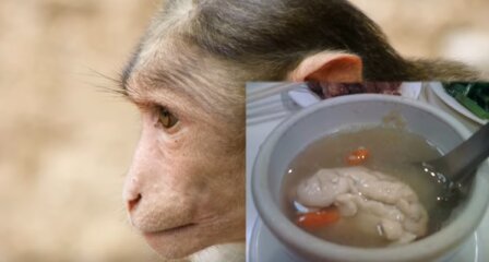 Одно из самых шокирующих блюд, блюда из мозга живой обезьяны. Его можно попробовать только в специальных закрытых ресторана Гонконга и Китая. Поскольку законом запрещено убийства и использования в пищу этих животных. Понятно что животные не могут вынести такой боли и быстро умирают. Но «фишка блюда» состоит в том, что есть нужно мозги живых обезьян. Для этого китайцы, перед подачей на стол, накачивают бедных животных спиртным, которое служит своеобразным болеутоляющим. Голову пьяной обезьяны помещают специальное приспособление на столе и прочно фиксируют. С макушки сбривают шерсть и спиливают верхнюю часть черепа так чтобы открылись мозги. Мозги нужно немного посолить и есть специальная острой ложечкой. Надо учесть, что в этот момент даже подвыпившая обезьяна будет дико орать. На этом все. приятного аппетита. Не забывайте подписываться на канал и ставить лайк.