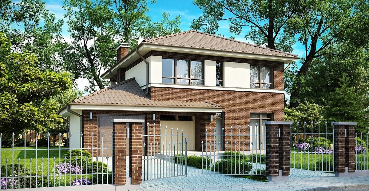 Элегантный двухэтажный дом с боковым гаражом и кабинетом на первом этаже