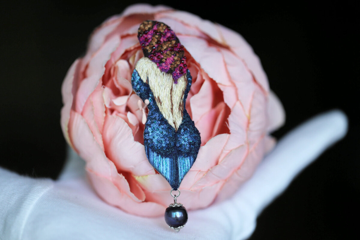 Я как-то не сразу поняла её, но пройти мимо неё было невозможно. Я знаю, о чем она думает. И что она чувствует тоже знаю. Она хочет быть. И поэтому она здесь. Вихрь из глубины. Женщина из аромата цветка. Тепло из сердца. И алые лепестки и в волосах. брошь вышита французскими узелками и гладью. Хлопком, люрексом, бисером. Подвеска — натуральная чёрная жемчужина. Японская булавка. Размер броши 7 см плюс 1,5 см подвеска. Брошь легкая, весит всего 4 грамма. Она не произносит ни слова, но, мне кажется, что она говорит. P.S.: Подписывайтесь, буду рада вам! Украшения, которые я создаю, тут — Инстаграм и Вконтакте. А магазин моих схем и украшений тут. Благодарю за внимание к моему творчеству ❤️.
